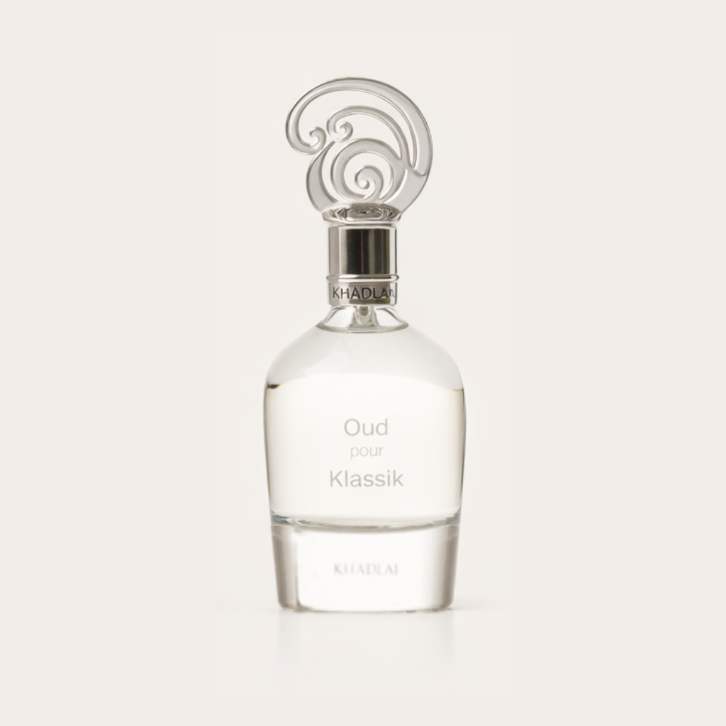 Khadlaj Oud Pour Klassik is a rich, woody-oriental fragrance with a classic Middle Eastern aura. It opens with deep oud and smoky resinous notes, giving a bold, luxurious first impression. The heart blends warm spices and amber, adding smooth warmth and complexity, while the dry-down settles into woody vanilla, musk and light balsamic accords, creating a long-lasting, sensual finish.
